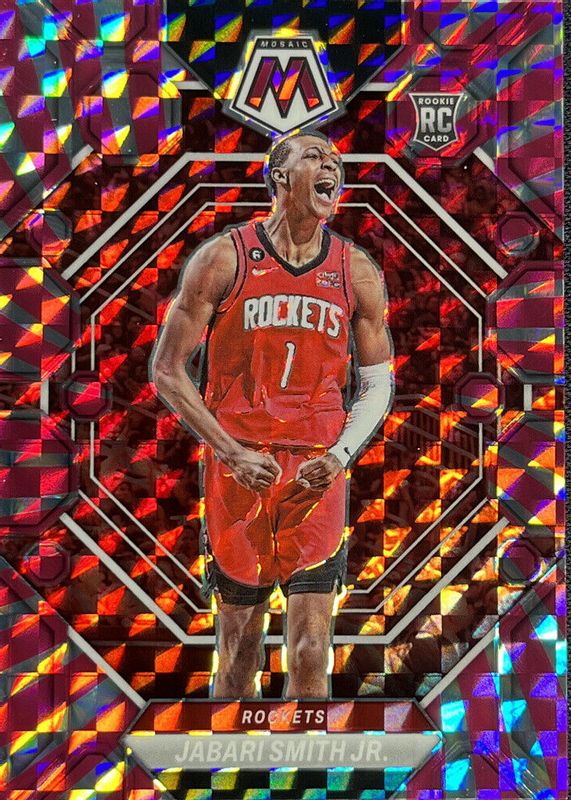 The Jabari Smith Jr. 2022 Mosaic #239 FOTL Pink Swirl /20 Rookie card in Raw condition has not changed in price in the last 30 days and was last sold for $25.00 .
