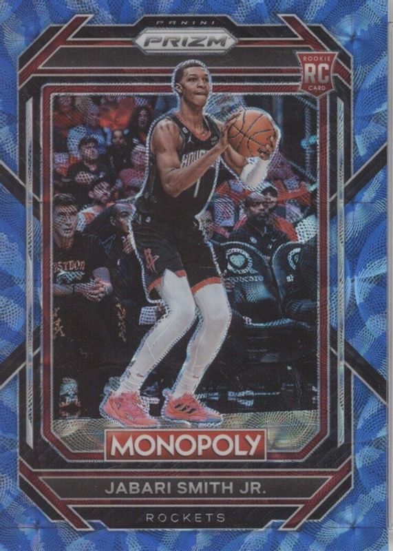 The Jabari Smith Jr. 2022 Prizm Monopoly #32 Boardwalk Blue Tiger Stripe Rookie card in Raw condition has not changed in price in the last 30 days and was last sold for $45.00 .
