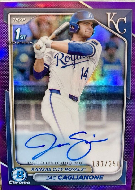 2024 Bowman Draft Jac Caglianone 1st PURPLE Chrome AUTO Refractor 134/250 Royals
