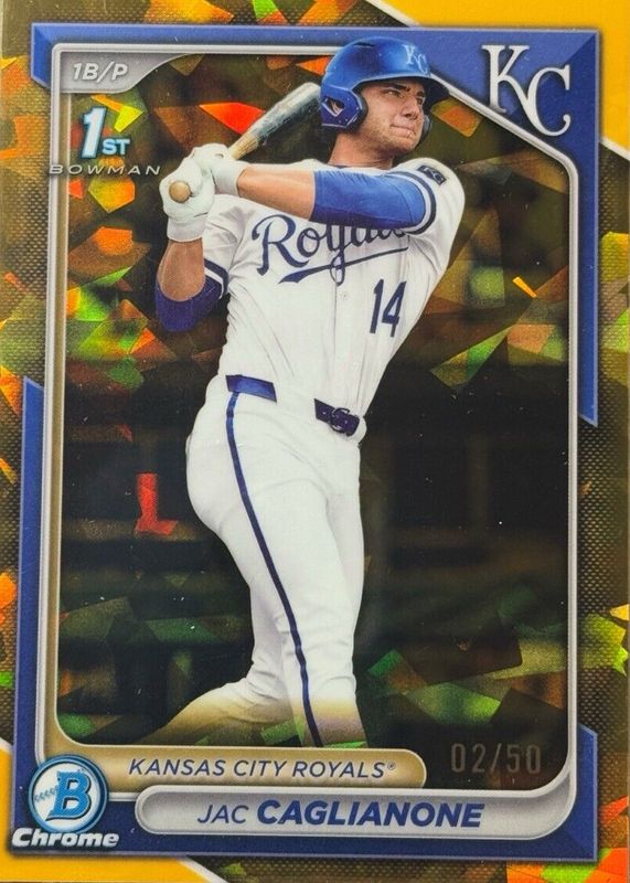 JAC CAGLIANONE 2024 BOWMAN CHROME DRAFT SAPPHIRE GOLD REFRACTOR 1ST 30/50