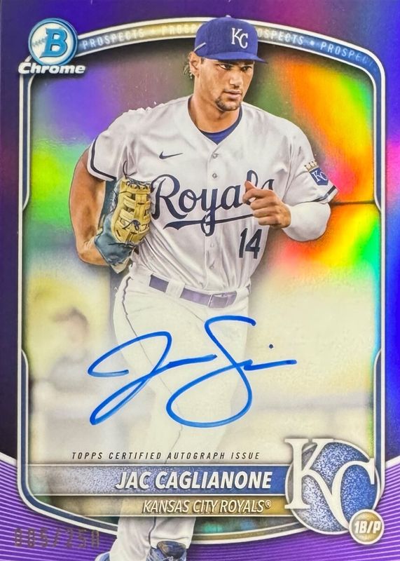 2025 BOWMAN CHROME JAC CAGLIANONE CPA-JCA PROSPECT PURPLE REFRACTOR AUTO /250
