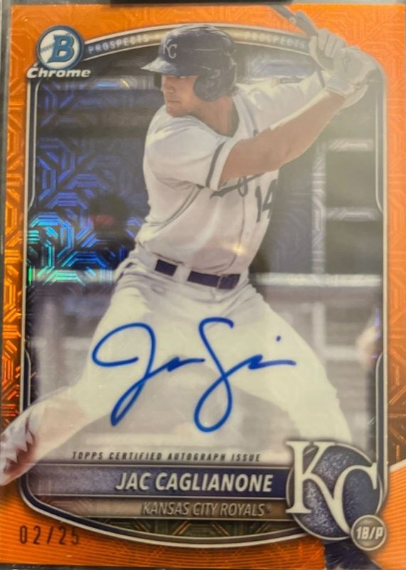 Jac Caglianone 2025 Bowman Mega Box #BMA-JC Chrome Prospect Auto - Orange Refractor /25 RAW Price Guide