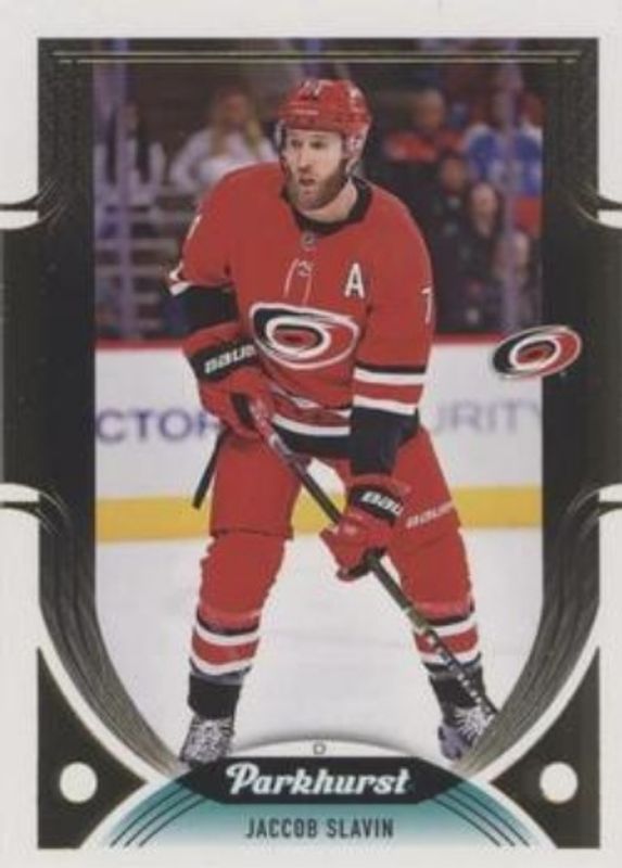 The Jaccob Slavin 2020 Upper Deck Parkhurst #29 Gold Foil card is 1 of 5 Jaccob Slavin's card variations in the 2020 Upper Deck Parkhurst set being tracked by Sports Card Investor, including Base, Gold, Silver, and Bronze.
