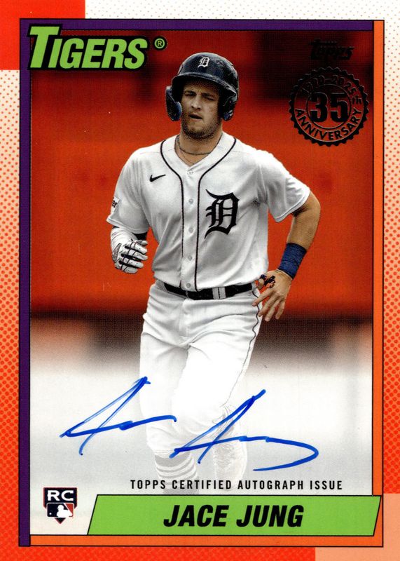 Auctions Ending Soon for Jace Jung 2025 Topps #90A-JJU 1990 Topps Baseball Autographs - Orange /25 Rookie RAW