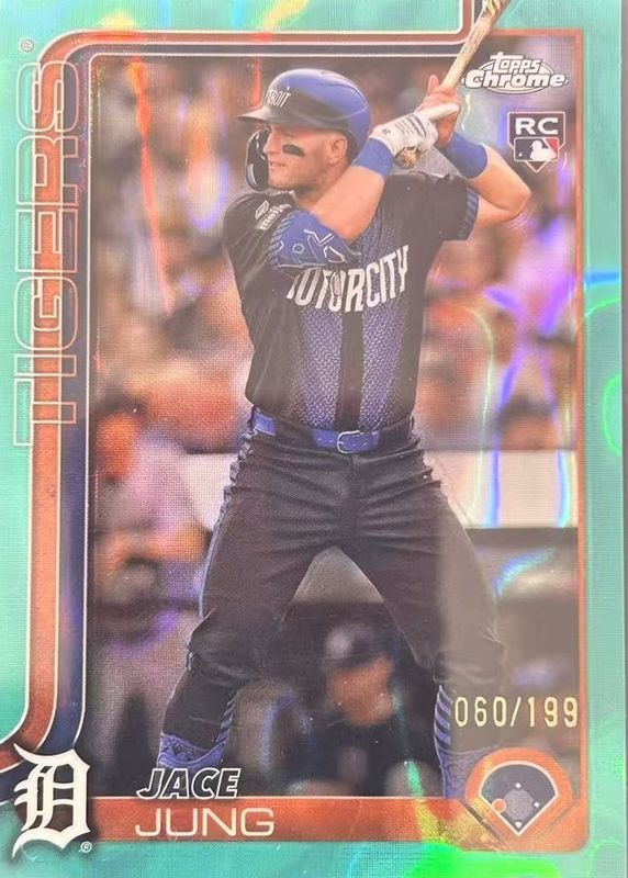 Jace Jung 2025 Topps Chrome #225 Aqua Lava Refractor /199 Rookie RAW Price Guide