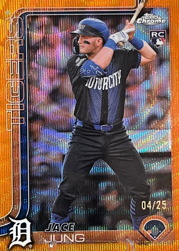 Auctions Ending Soon for Jace Jung 2025 Topps Chrome #225 Orange Refractor /25 Rookie RAW
