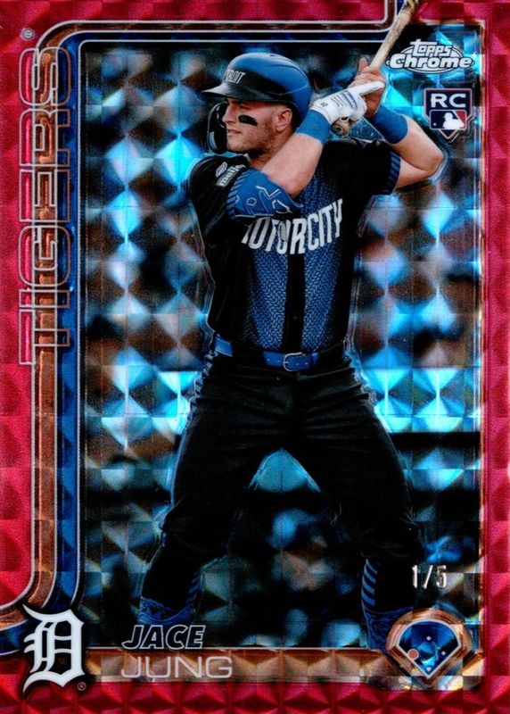 Jace Jung 2025 Topps Chrome #225 Red Geometric Refractor /5 Rookie RAW Price Guide