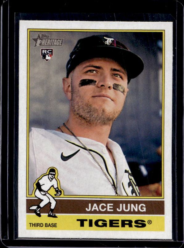 The Jace Jung 2025 Topps Heritage #71 Base Rookie card in Raw condition has moved up $0.13 (+13.1%) in the last 30 days and was last sold for $1.12 .