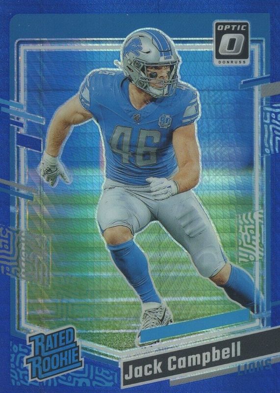The Jack Campbell 2023 Optic #235 Blue Hyper Rookie card in Raw condition has moved up $1.26 (+46.8%) in the last 30 days and was last sold for $3.95 .
