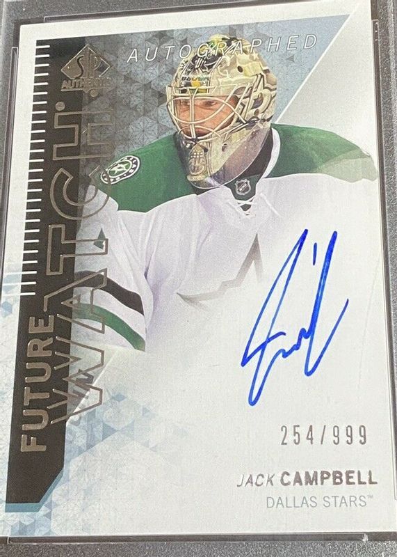 The Jack Campbell (NHL) 2013 SP Authentic #303 Future Watch Auto /999 Rookie card in Raw condition has moved up $11.56 (+293%) in the last 30 days and was last sold for $15.50 .