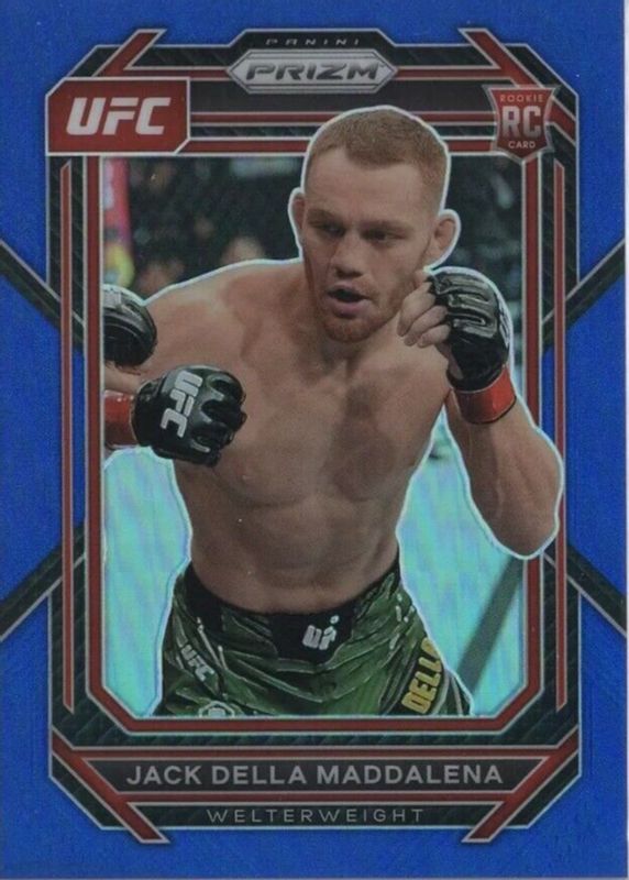 The Jack Della Maddalena 2023 Prizm UFC #187 Blue /175 Rookie card in Raw condition has not changed in price in the last 30 days and was last sold for $9.50 .