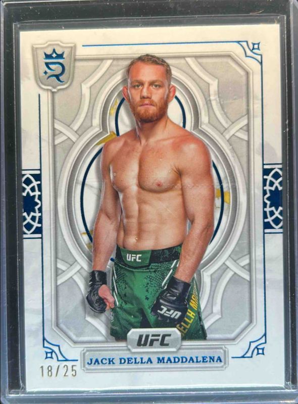 The Jack Della Maddalena 2024 Topps UFC Royalty #95 Blue /25 card is 1 of 25 Jack Della Maddalena's card variations in the 2024 Topps UFC Royalty set being tracked by Sports Card Investor, including Base /99, Purple /35, Red /15, Gold /10, and Green /5.