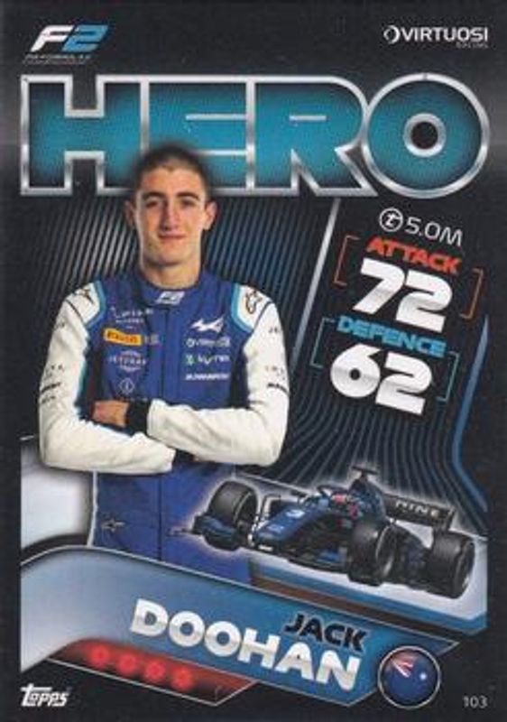 The Jack Doohan 2022 Topps Turbo Attax Formula 1 #103 Base card is 1 of 2 Jack Doohan's card variations in the 2022 Topps Turbo Attax Formula 1 set being tracked by Sports Card Investor, including Exclusive.