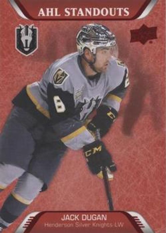 The Jack Dugan 2020 Upper Deck AHL #228 Red card is 1 of 4 Jack Dugan's card variations in the 2020 Upper Deck AHL set being tracked by Sports Card Investor, including Base, Gold /25, and Autographs.