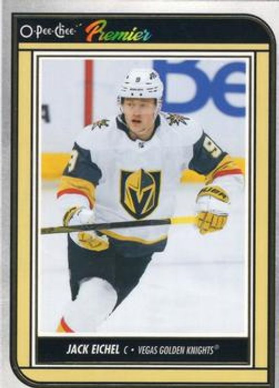 The Jack Eichel 2022 O-Pee-Chee #P-45 O-Pee-Chee - Premier card is 1 of 24 Jack Eichel's card variations in the 2022 O-Pee-Chee set being tracked by Sports Card Investor, including #109 Base, #109b Base, #109c Base, #109d Base, and #109 Blue Border.