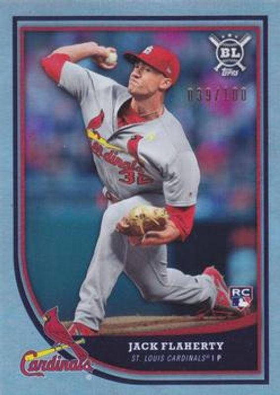 The Jack Flaherty 2018 Topps Big League #167 Rainbow Foil /100 Rookie card is 1 of 10 Jack Flaherty's card variations in the 2018 Topps Big League set being tracked by Sports Card Investor, including Base, Blue, Gold, Black & White /50, and Red Foil /1.