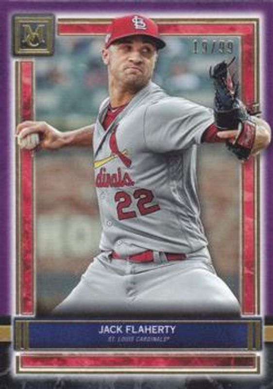 The Jack Flaherty 2020 Topps Museum Collection #37 Amethyst /99 card is 1 of 23 Jack Flaherty's card variations in the 2020 Topps Museum Collection set being tracked by Sports Card Investor, including Base, Copper, Sapphire /150, Ruby /50, and Emerald /1.