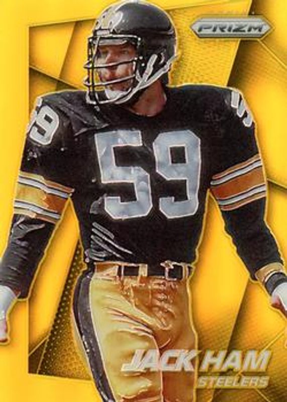 The Jack Ham 2014 Prizm #137 Gold /10 card is 1 of 19 Jack Ham's card variations in the 2014 Prizm set being tracked by Sports Card Investor, including Base, Blue, Camo, Green, and Neon Green & Yellow.