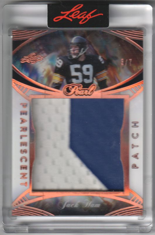 The Jack Ham 2025 Leaf Pearl #PP-9 Pearlescent Patch - Bronze Spectrum /7 card is 1 of 10 Jack Ham's card variations in the 2025 Leaf Pearl set being tracked by Sports Card Investor, including Pearlescent Patch, Pearlescent Patch - Green Spectrum /6, Pearlescent Patch - Purple Spectrum /5, Pearlescent Patch - Blue Spectrum /4, and Pearlescent Patch - Red Spectrum /3.