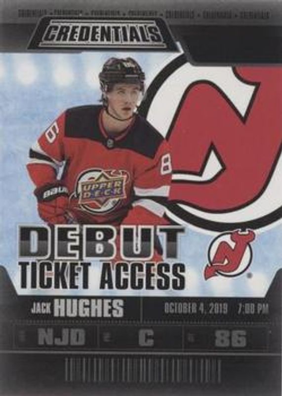 Jack Hughes 2019 Upper Deck Credentials #VDTA-JH VIP Debut Ticket Access Rookie RAW Price Guide
