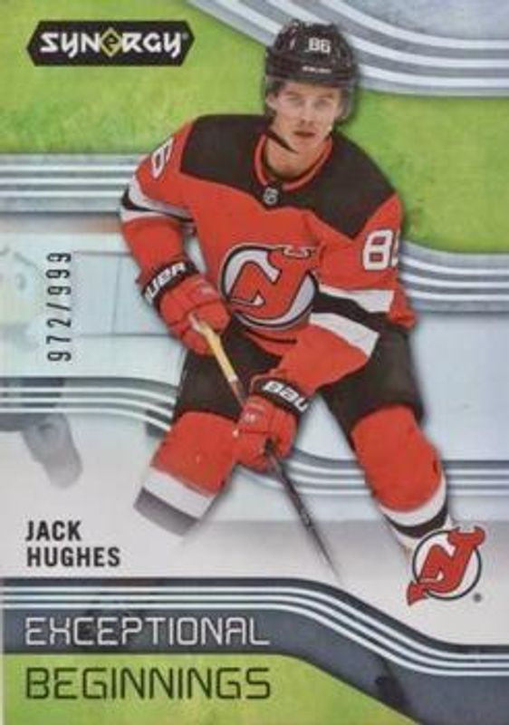 Jack Hughes 2019 Upper Deck Synergy #EB-28 Exceptional Beginnings /999 Rookie RAW