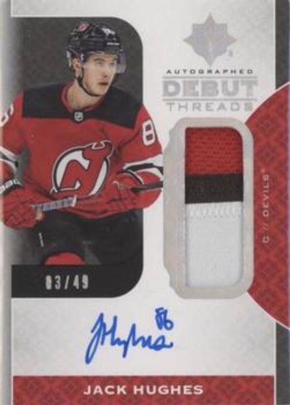 Jack Hughes 2019 Upper Deck Ultimate Collection #DT-JH Autographed Debut Threads /99 Rookie RAW Price Guide