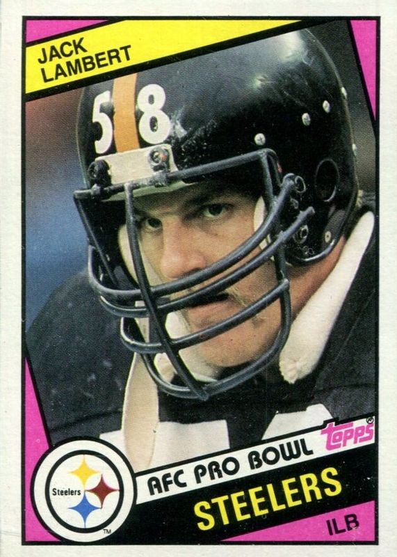 This card is 1 of 4 Jack Lambert's card variations in the 1984 Topps set being tracked by Sports Card Investor, including #168 Base, 1984 NFL Football Stars Collector's Edition (Glossy Send Ins), and #25 1984 NFL Football Stars Collector's Edition (Glossy Send Ins).
