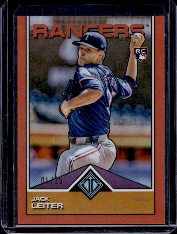 The Jack Leiter 2024 Topps Transcendent #42 Orange Refractor /25 Rookie card is 1 of 19 Jack Leiter's card variations in the 2024 Topps Transcendent set being tracked by Sports Card Investor, including Base, Black Refractor /10, Red Refractor /5, Superfractors /1, and Image Variations.