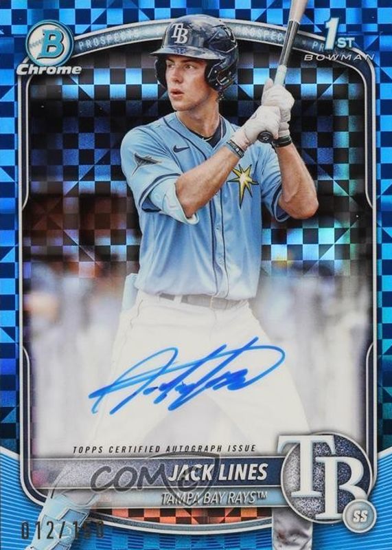 2025 Bowman Jack Lines Chrome Auto Blue X-Fractor 1st Prospect #/150 Rays