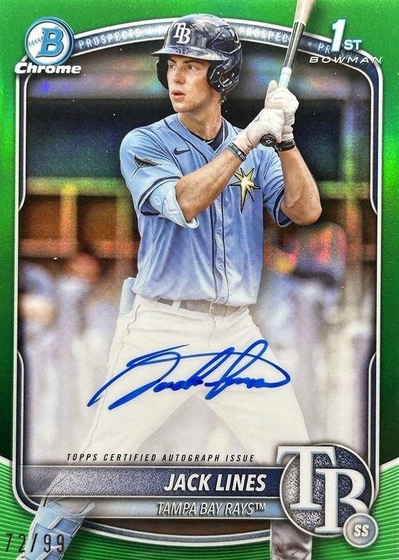 Jack Lines 2025 Bowman Chrome 1st Green Refractor Auto /99 #CPA-JLI Rays