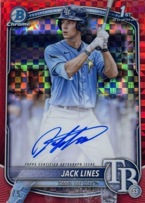 Jack Lines 2025 Bowman #CPA-JLI Chrome Prospect Auto - Red X-Fractor /5 (1st) RAW Price Guide