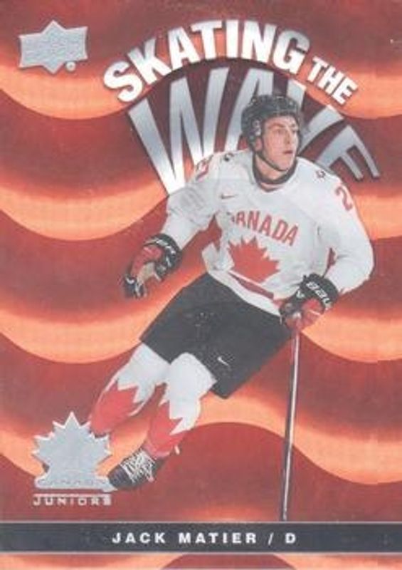 The Jack Matier 2023 Upper Deck Team Canada Juniors #SW-6 Skating the Wave card is 1 of 68 Jack Matier's card variations in the 2023 Upper Deck Team Canada Juniors set being tracked by Sports Card Investor, including #77 Base, #107 Base, #12 Base, #77 Clear Cut, and #12 Clear Cut.