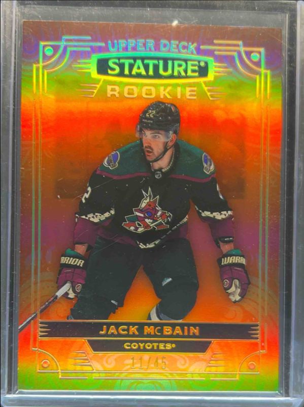 The Jack McBain 2022 Upper Deck Stature #125 Orange /45 Rookie card is 1 of 48 Jack McBain's card variations in the 2022 Upper Deck Stature set being tracked by Sports Card Investor, including Base /399, Green /99, Photo Variant /99, Red /75, and Photo Variant Green /66.