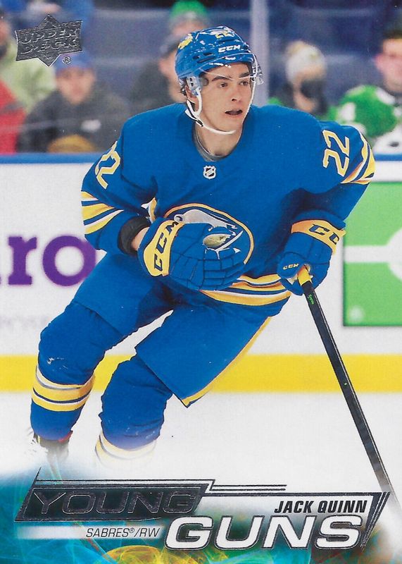 Jack Quinn's Hockey cards are available in at least 44 sets. Jack Quinn's biggest 7-day price movers are 2022 Upper Deck #204 Young Guns Base, 2022 Upper Deck The Cup #101 Rookie Patch Auto (/249), and 2022 SP Authentic #108 Future Watch Auto /999.