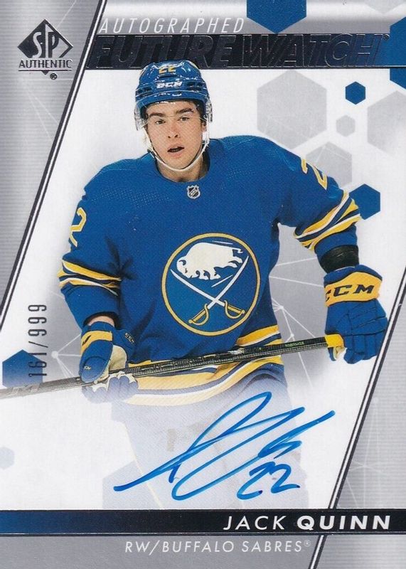 2022/23 SP Authentic Future Watch Jack Quinn Buffalo Sabres Rookie RC Auto /999