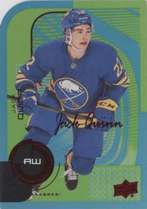 The Jack Quinn 2022 Upper Deck MVP #100 Colors & Contours - Green /20 Rookie card is 1 of 28 Jack Quinn's card variations in the 2022 Upper Deck MVP set being tracked by Sports Card Investor, including Base, Blue Script, Gold Script, Ice Battles, and Silver Script.