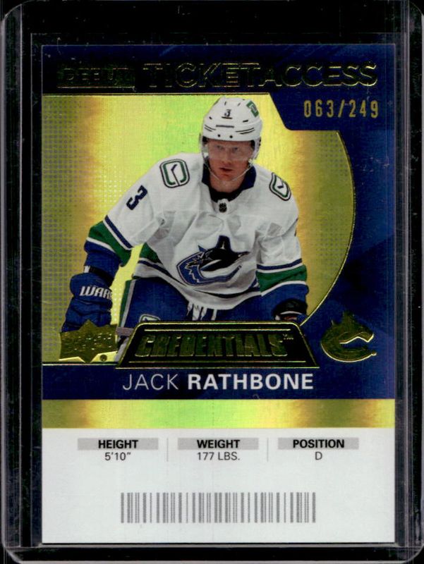 Jack Rathbone 2021 Upper Deck Credentials #51 2020 Debut Ticket Access - Yellow /249 RAW Price Guide