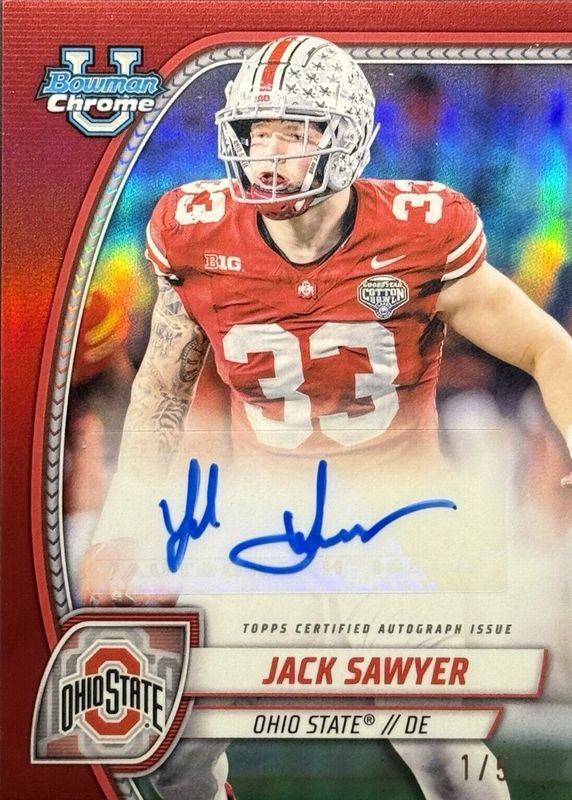 Auctions Ending Soon for Jack Sawyer 2024 Bowman Chrome University #PA-JSA Prospect Auto - Red Refractor /5 RAW