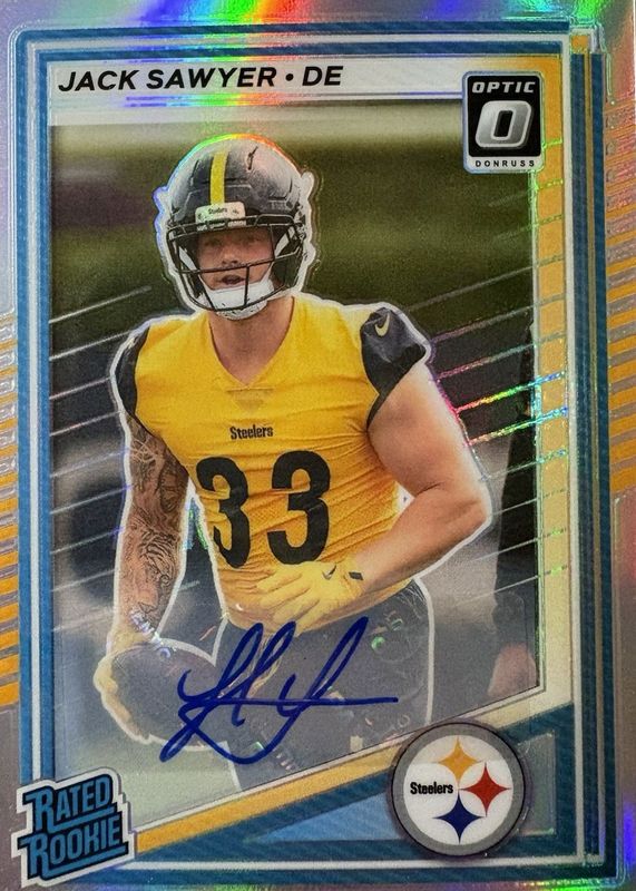 The Jack Sawyer 2025 Donruss #390 Optic Preview Rated Rookie Autographs card in Raw condition has moved down -$20.00 (-57.2%) in the last 30 days and was last sold for $14.99 .