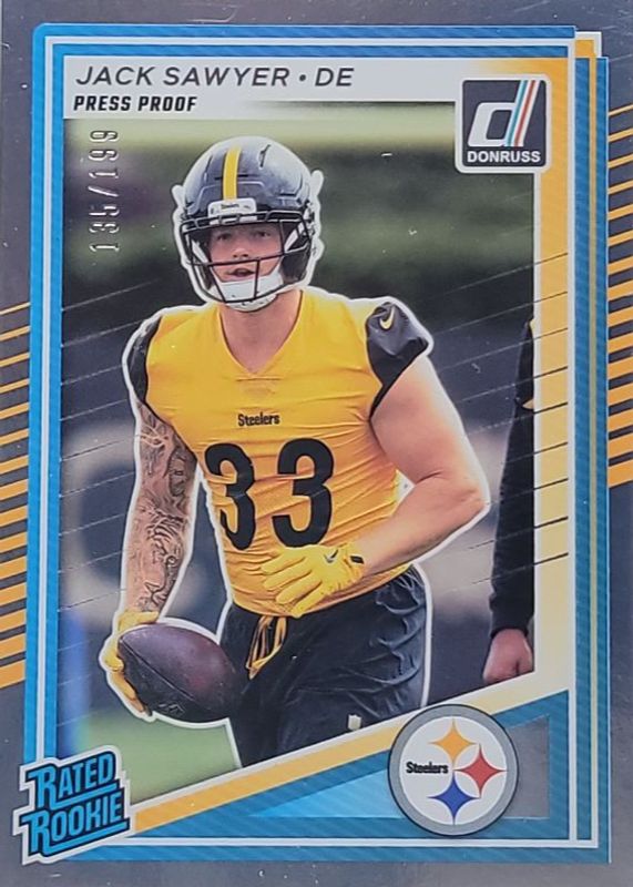 2025 Donruss Jack Sawyer Silver Press Proof Rated Rookie 168/199 Steelers