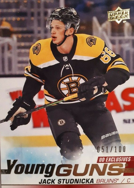 This card is 1 of 7 Jack Studnicka's card variations in the 2019 Upper Deck set being tracked by Sports Card Investor, including Young Guns Base, Young Guns - Clear Cut, Young Guns - Clear Cut Exclusives, Young Guns - Silver Foil, and Young Guns - Speckled Rainbow Foil.