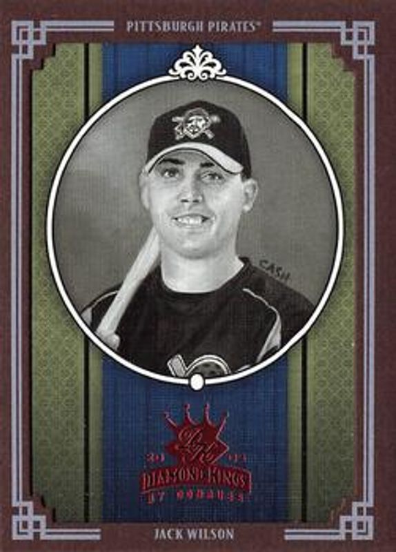 The Jack Wilson 2005 Diamond Kings #180 Framed Red Black & White card is 1 of 100 Jack Wilson's card variations in the 2005 Diamond Kings set being tracked by Sports Card Investor, including Base, Black & White, Framed Red, Non Canvas, and Non Canvas Black & White.