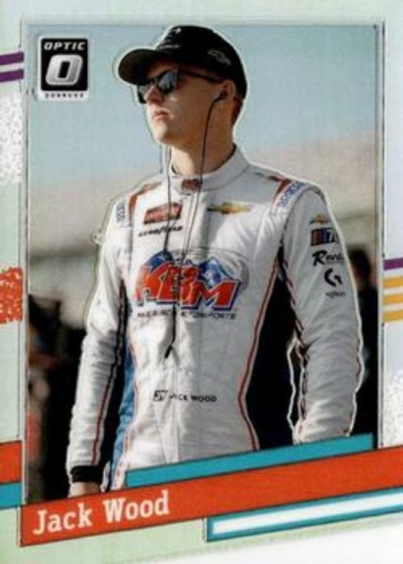 The Jack Wood 2024 Donruss NASCAR #145 Optic Holo card is 1 of 28 Jack Wood's card variations in the 2024 Donruss NASCAR set being tracked by Sports Card Investor, including Base, Optic, Optic Black Pandora, Optic Blue Velocity, and Optic Orange Velocity.