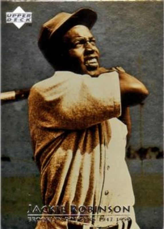 The Jackie Robinson 1997 Upper Deck #1 Base card is 1 of 9 Jackie Robinson's card variations in the 1997 Upper Deck set being tracked by Sports Card Investor, including #2 Base, #3 Base, #4 Base, #5 Base, and #6 Base.