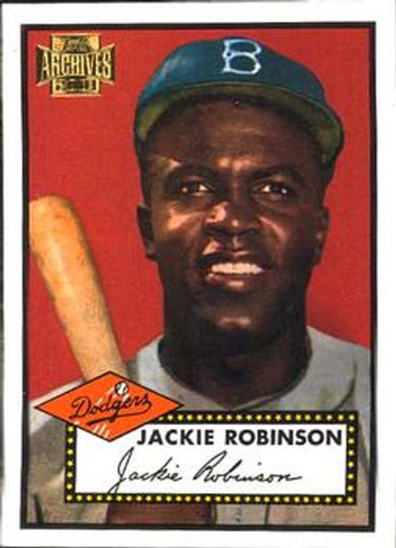 The Jackie Robinson 2001 Topps Archives #316 Base card is 1 of 3 Jackie Robinson's card variations in the 2001 Topps Archives set being tracked by Sports Card Investor, including Base, and Topps Bucks.