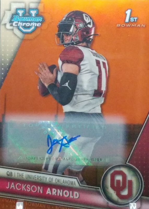 Jackson Arnold 2023 Bowman Chrome U 1st Auto Orange Refractor SP /25 RC Oklahoma