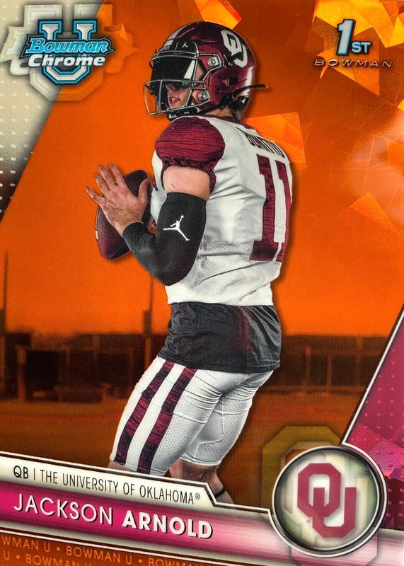Best Prices Available For Sale of Jackson Arnold 2023 Bowman Chrome University Sapphire Edition #102 Orange /25 (1st)