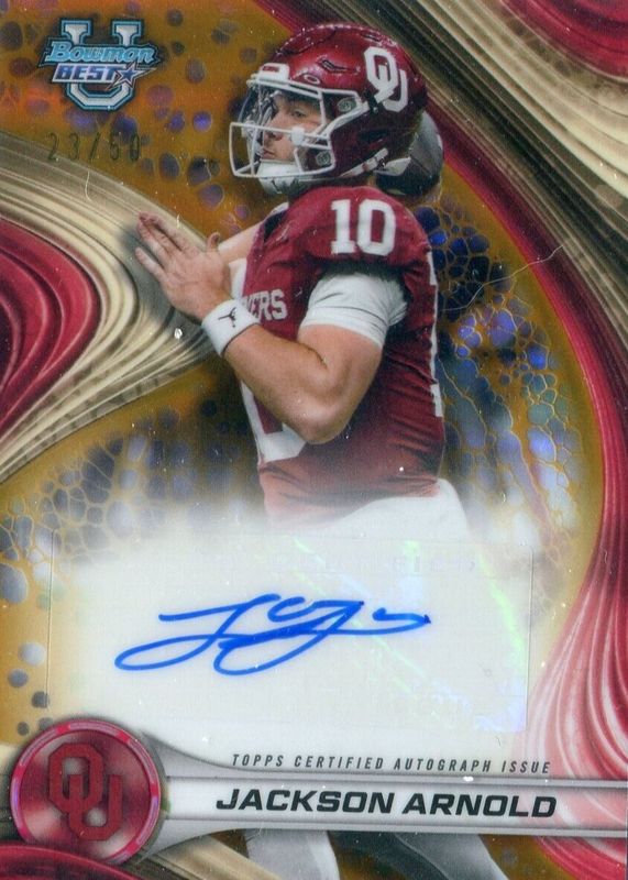 2024 Bowman Best U Jackson Arnold Auto Gold Refractor #ed 45/50 Sooners