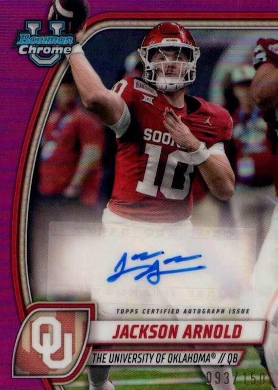 Jackson Arnold 2024 Bowman U Chrome Fuchsia Refractor Auto /150 Oklahoma Sooners