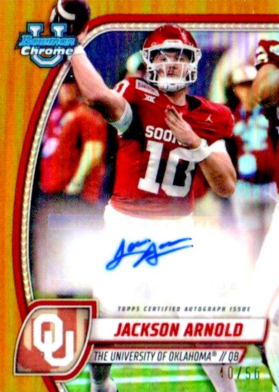 2024 Bowman Chrome University Auto Gold JACKSON ARNOLD 34/50 Oklahoma Sooners